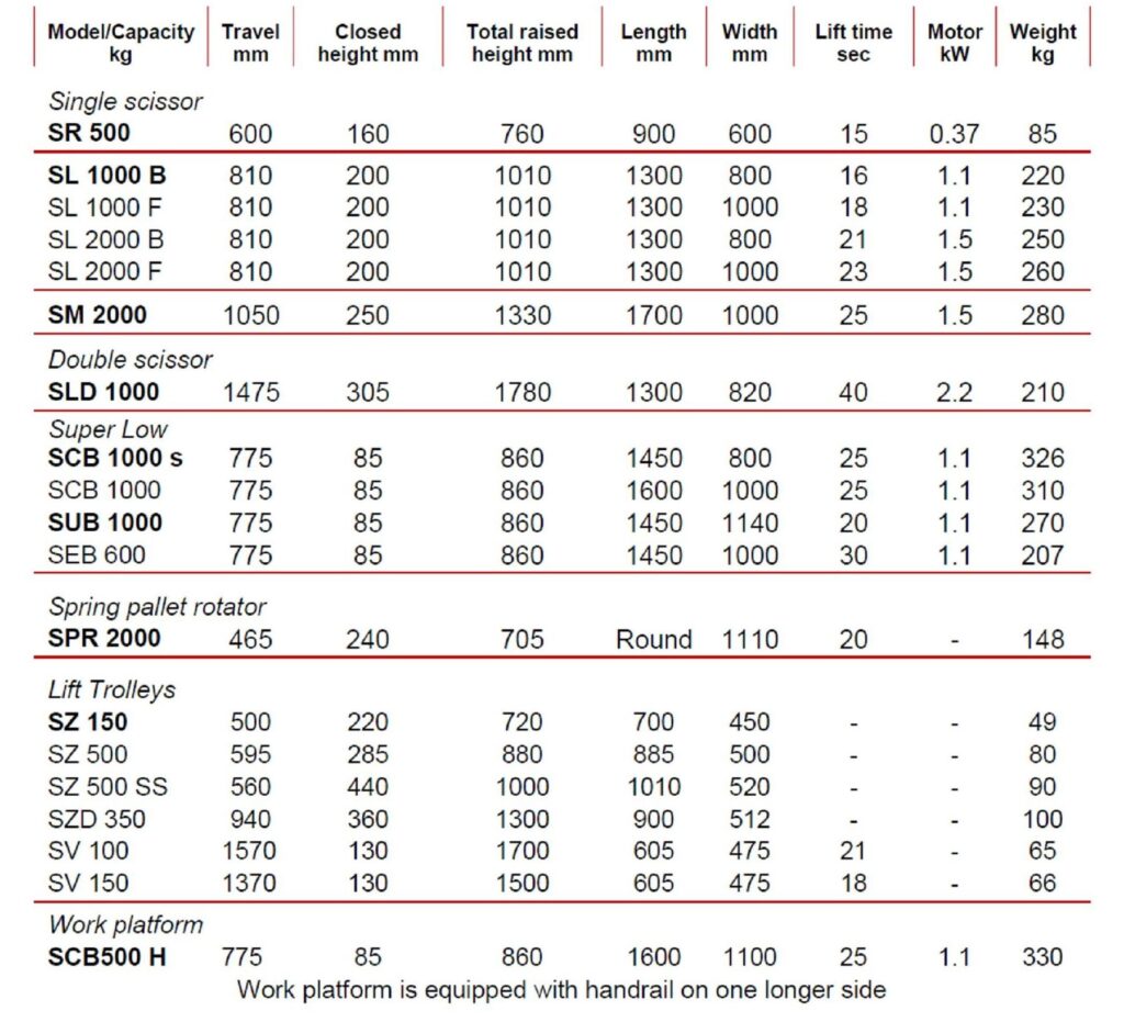 Silverline is synonymous with craftsmanship, low price and easy access to spare parts. A Silverline lifting solution can be the solution wherever lifting heavy loads, awkward working positions and variable heights pose a challenge. The 11 basic models include electric lifts, lift trolleys, low-profile lifting tables and ordinary lift tables. The SCB work platform deserves special attention because it completely changes the standard of working conditions in the workplace. The Silverline lifting solutions are available in painted steel in grey RAL 7031 colour.